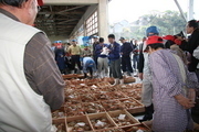 競りはまず最初にセコガニから行われます。ここでも意気のいいかけ声が響きわたりました。